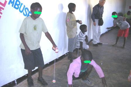 Rも帰ってきて軽くお昼を食べた後、午後からは、シェルターに訪問。日本から持ってきてくれた紙風船・駒・凧・竹とんぼ・けん玉などなどおもちゃを一緒に遊びました。早い子は私達が帰る時間までに駒をまわせるように、けん玉も乗せることが出来るようになっていました。大きい子どもたちは小さい子どもと一緒になっておもちゃで遊びたがらないので、エコクラフトで新しいコースターにチャレンジ。男の子も器用に編みます。